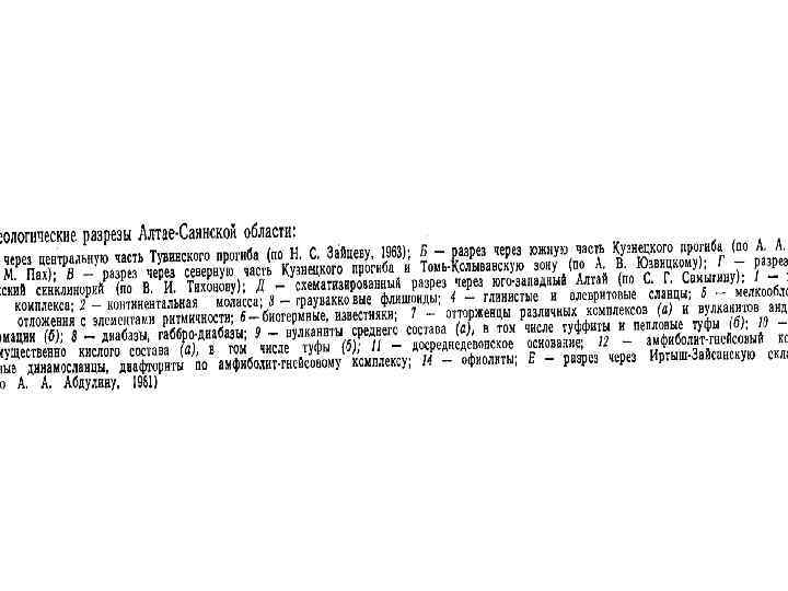 Характеристика структур Кузнецко-Саяно-Тувинской подоб • 1. 1. Тувино-Северомонгольский остаточный срединный массив с досалаирскаи и частично с добайкальским фундаментом • J континентальная юра • RF 3 –C слабо метаморфизованные терригеннокарбонатные отложения • AR – RF 1 -2 слабо метаморфизованный фундамент • 1. 2. Кузнецко-Восточносаянская салаирская складчатая система • D-P наложенные сингерцинские впадины – Минусинские, на салаирском фундаменте • RF 3 – C складчатый г/с комплекс • AR – PR метаморфический фундамент