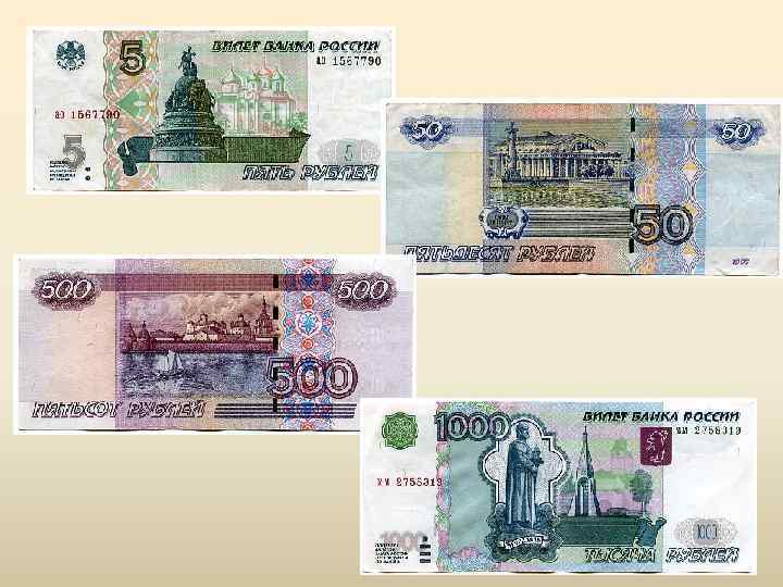 В 2001 -м году в обращение выпущены модифицированные банкноты (Билеты Банка России) образца 1997 года, достоинством 10, 50, 100, 500 рублей, на банкнотах имеется обозначение: "Выпуск 2001". После краха финансовой системы страны и девальвации национальной валюты в августе - декабре 1998 г. , и продолжающейся инфляции в 1999 - 2001 г. г. , курс рубля постоянно снижается, и ЦБР вынужден разрабатывать купюры более высокого номинала, чем сейчас и занимаются в НИИ Гознака.