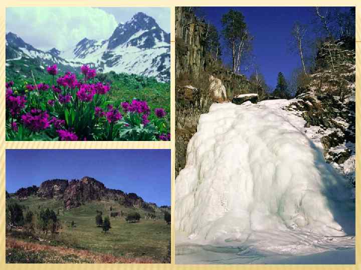 ПРИРОДА АЛТАЙСКОГО ЗАПОВЕДНИКА Климат носит континентальный характер, обусловленный положением заповедника вблизи Азии, однако в различных частях климатические условия неодинаковы. Например, в северной части лето теплое и влажное, средняя температура июля + 16, 0 0 С, зимы снежные и мягкие ( средняя температура января - 8, 7 0 С), в то время как в юго-восточной части зимой температура опускается до - 50 0 С, а летом – до 30 0 С. Почвенный покров заповедника разнообразен. Он изменяется от черноземных – по степным склонам до кислых скрытоподзолистых – в тайге. Более 20% площади покрыто каменистыми осыпями, галечниками и скальными породами. Растительность представлена степями, горными лесами (пихтовыми, кедровыми, лиственничными, ельниками), субальпийскими кустарниками и редколесьями, лугами и горными тундрами. В заповеднике встречаются растения, занесенные в Красную книгу: из грибов – сетконоска сдвоенная, грифола зонтичная, ежевик коралловый, гриб-зонтик девичий; из лишайников – лобария легочная и сетчатая, стикта окаймленная; из мохообразных – кампилиум Крылова. На территории заповедника известно 1480 видов сосудистых растений. На лугах и лесах по территории всего заповедника распространен золотарник даурский.