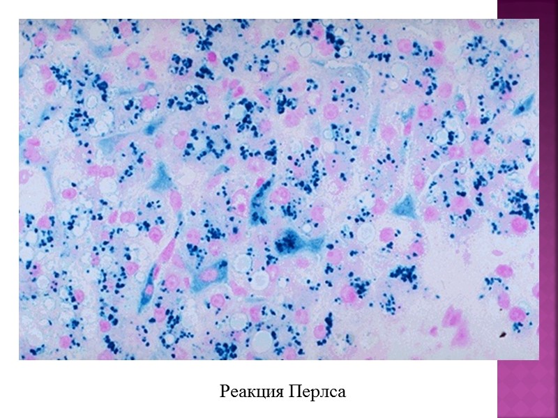 Гемосидероз Общий внутрисосудистый гемолиз (перелив. несовм. крови, отр гемол ядами, нек инф б-ни, сепсис) Местный внесосудистый гемолиз (кровоизлияния, гемосидероз легкого при венозном застое)