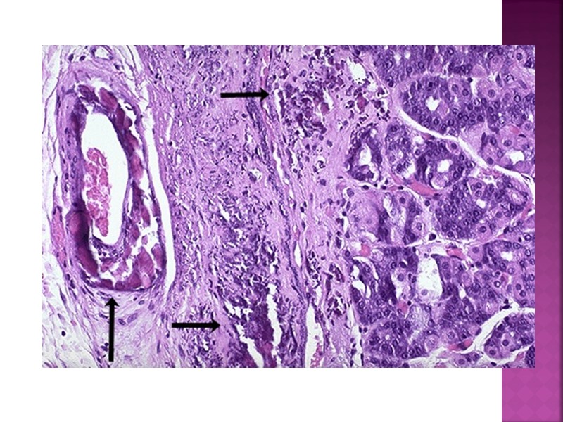 Нарушения обмена кальция (кальциноз, известковая дистрофия, обызвествление) 1)Метастатическое обызвествление: - гиперкальциемия - причины: выход Ca из кости ( повышение содержания паратгормона, опухоли кости, множественные переломы), отсутствие выведения Ca (хронические заболевания толстой кишки, почек), избыток vit D. - кальций откладывается в сердце, легких, почках, слизистой желудка, стенках артерий (в этих органах - щелочная среда).
