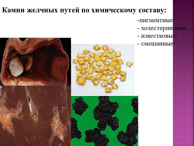 Камни желчных путей по химическому составу: пигментные, холестериновые, известковые, смешанные