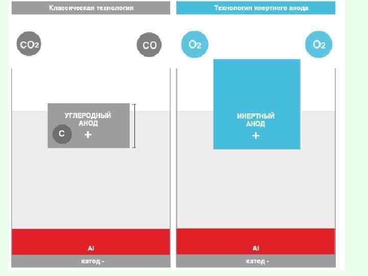 При электролизе • на катоде выделяется алюминий , а на аноде - кислород. • Алюминий , обладающий большей плотностью , чем исходный расплав, собирается на дне эликтролизера, откуда его периодически выпускают. • По мере выделения металла, в расплав добавляют новые порции глинозема. • Выделяющийся при электролизе кислород взаимодействует с углеродом анода, который выгорает, образуя CO и CO 2.