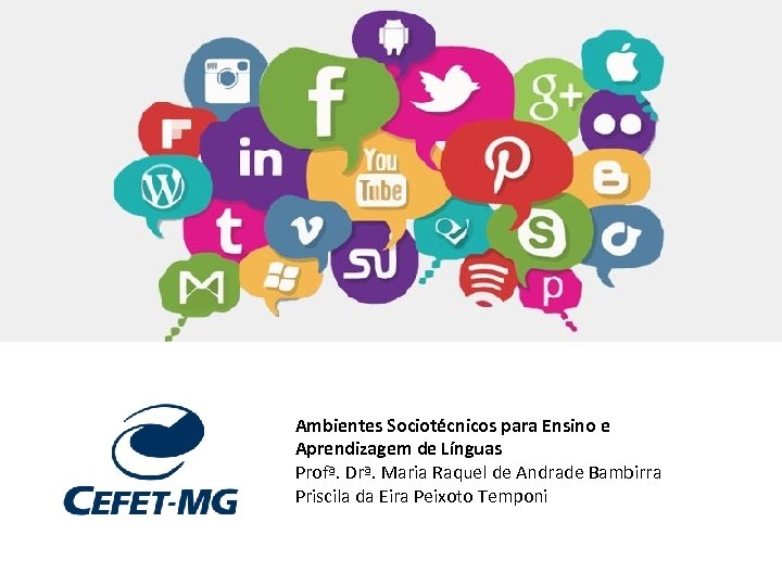Ambientes Sociotécnicos para Ensino e Aprendizagem de Línguas Profª. Drª. Maria Raquel de Andrade Bambirra Priscila da Eira Peixoto Temponi