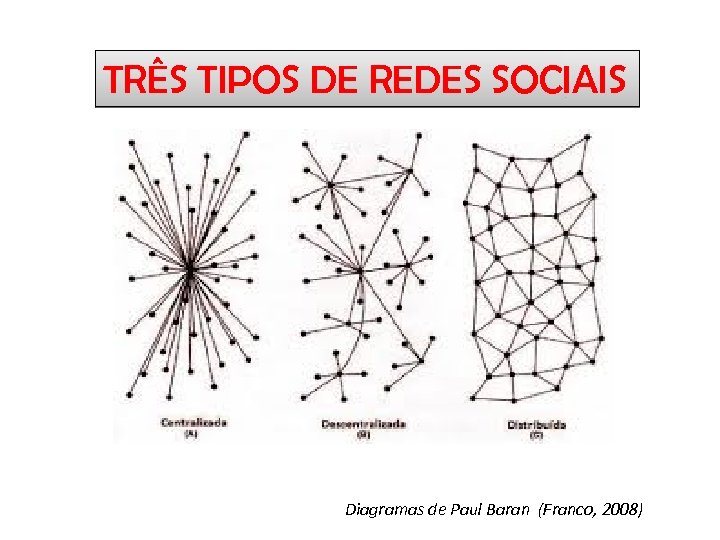 TRÊS TIPOS DE REDES SOCIAIS Diagramas de Paul Baran (Franco, 2008)