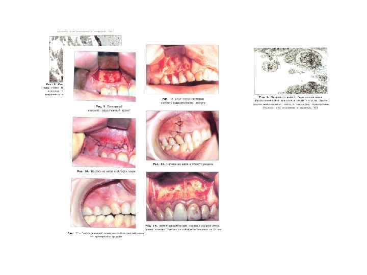• • • • Послеоперационный уход за больными в течение 2 4 сут заключается в эвакуации гемморрагического экссудата, а так же излишков гидроксиапатита, скопившегося между швами. При гнойных процессах назначается курс антибиотикотера пии и антимикробных препаратов. После удаления прорас¬ тающих в верхнечелюстной синус кист используются закапы¬ вания сосудосуживающих капель в нос. Со 2 го дня всем больным проводились физиотерапевтические процедуры ла¬ зером «Оптодан» . Динамические наблюдения за больными осуществлялись на основании клинического, рентгенологического исследо¬ вания, в том числе с использованием радиовизиографии. У всех больных послеоперационное течение было гладким. Заживление проходило первичным натяжением, отек окру¬ жающих мягких тканей спадал на 4 5 е сутки. Швы снимали на 5 б е сутки.