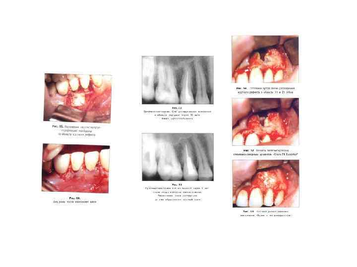 Нагноившиеся хронические деструктивные околокорневые процессы • При нагноившихся периапикальных изменениях мы предлага¬ • ем осуществлять одноэтапное хирургическое лечение без ре¬ • зекции верхушек корней. После цистэктомии или гранулэкто • мии костная полость заполняется готовыми формами препа¬ • рата на основе гидроксиапатита с добавлением антибиотиков • или антимикробных препаратов, например трихопола.