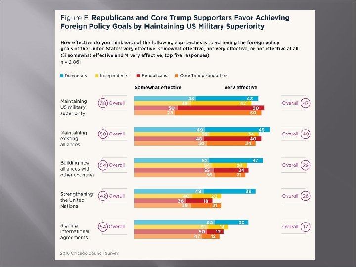 III Public Opinion Is the public ignorant toward foreign policy? 1. 2. 3. Only 58%of the public in 1964 knew that the US was a member of NATO, and 38% thought the Soviet Union was. Only 4 months after the dramatic ceremony held on Sept. 13, 1993, on the White House lawn with President Clinton, Israeli Prime Minister Yitzhak Rabin, and Palestine Liberation Organization leader Yasir Arafat, 56% of Americans could not identify the group that Arafat headed. In 2006, 3 years into the Iraq war, only 37% of young adults could locate Iraq on a map?