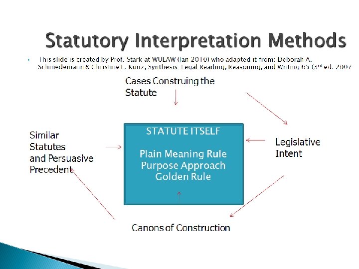 Extrinsic Evidence • look at other information about the social or legal context of the legislation ▫ Cases Sometimes the courts will construe the meaning of a statute
