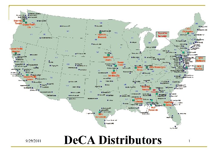De. CA Business Drivers n Promotions via Display (Presented to De. CA Headquarters) q q q Manager Specials: Category leaders, high volume items, deep discounts, normally 7 days, mandated display, administered via automated VCM at Headquarters Power Buy Display: High volume items, excellent prices, mandated quantities and display Primary Display: Required displays (K 1 & K 2 display these to the maximum extent possible) Secondary Display: Optional displays (store discretion) One Time Buys/Shippers: Highly consumable, impulse items Continued…