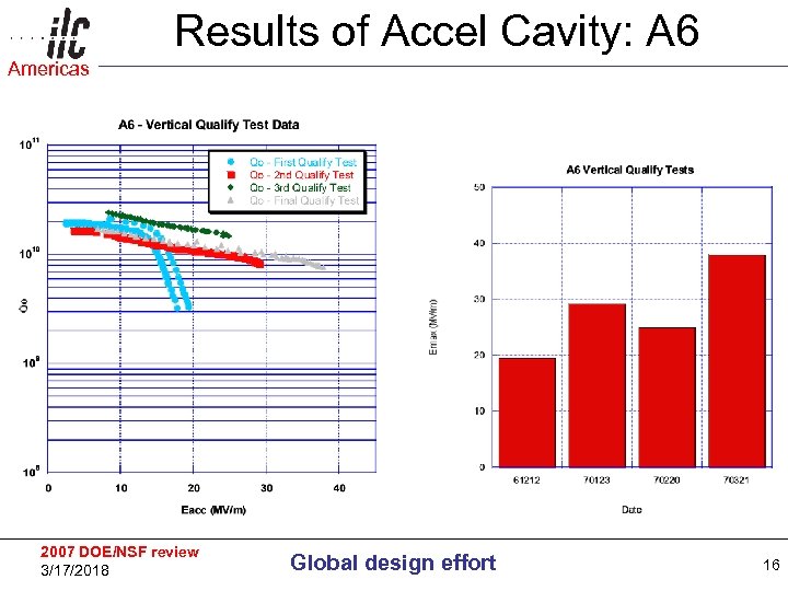 Results of Accel Cavity: A 6 Americas 2007 DOE/NSF review 3/17/2018 Global design effort 16