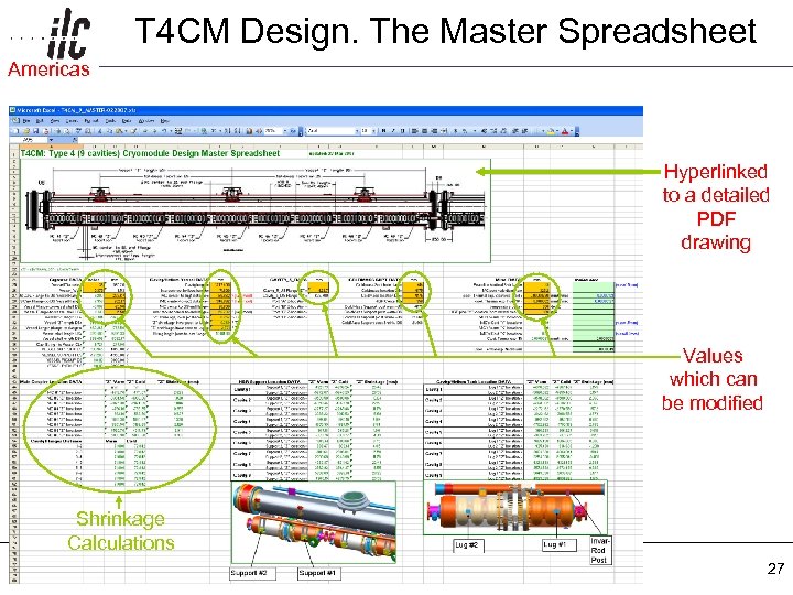 T 4 CM Design. The Master Spreadsheet Americas Hyperlinked to a detailed PDF drawing Values which can be modified Shrinkage Calculations 2007 DOE/NSF review 3/17/2018 Global design effort 27