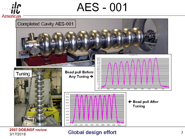 AES - 001 Americas Completed Cavity AES-001 Tuning Bead pull Before Any Tuning Bead pull After Tuning 2007 DOE/NSF review 3/17/2018 Global design effort 7