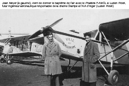 Jean Meyer (à gauche), vient de donner le baptême de l’air avec le Phalène F-AMSL à Lucien Pidell, futur ingénieur aéronautique responsable de la chaîne Stampe à l’AIA d’Alger (Lucien Pidell)