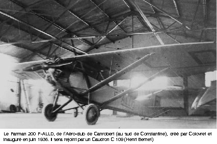 Le Farman 200 F-ALLD, de l’Aéro-club de Canrobert (au sud de Constantine), créé par Colovret et inauguré en juin 1936. Il sera rejoint par un Caudron C 109 (Henri Bernet)