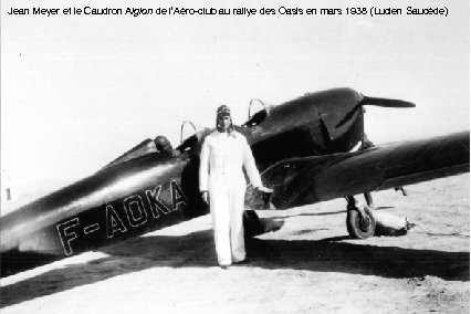 Jean Meyer et le Caudron Aiglon de l’Aéro-club au rallye des Oasis en mars 1938 (Lucien Saucède)