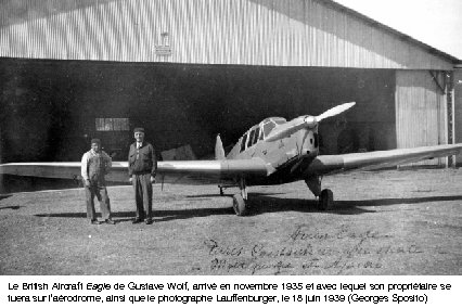 Le British Aircraft Eagle de Gustave Wolf, arrivé en novembre 1935 et avec lequel son propriétaire se tuera sur l’aérodrome, ainsi que le photographe Lauffenburger, le 18 juin 1939 (Georges Sposito)