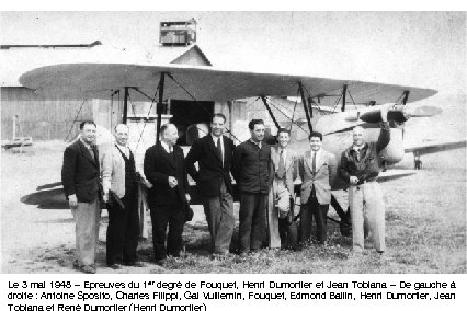 Le 3 mai 1948 – Epreuves du 1 er degré de Fouquet, Henri Dumortier et Jean Tobiana – De gauche à droite : Antoine Sposito, Charles Filippi, Gal Vuillemin, Fouquet, Edmond Ballin, Henri Dumortier, Jean