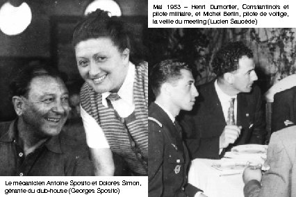 Mai 1953 – Henri Dumortier, Constantinois et pilote militaire, et Michel Berlin, pilote de voltige, la veille du meeting (Lucien Saucède) Le mécanicien Antoine Sposito et Dolorès Simon, gérante du club-house (Georges Sposito)