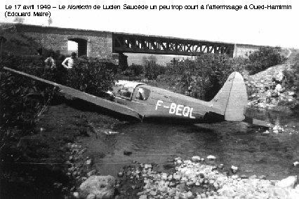 Le 17 avril 1949 – Le Norécrin de Lucien Saucède un peu trop court à l’atterrissage à Oued-Hamimin (Edouard Maire)