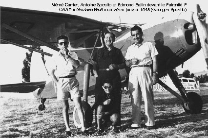 Mémé Carrier, Antoine Sposito et Edmond Ballin devant le Fairchild F -OAAP « Gustave Wolf » arrivé en janvier 1948 (Georges Sposito)
