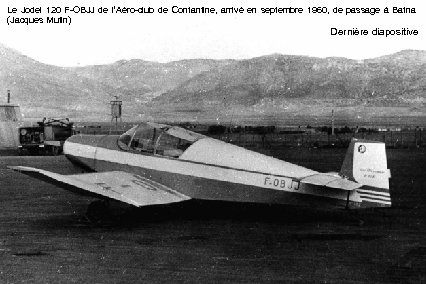 Le Jodel 120 F-OBJJ de l’Aéro-club de Contantine, arrivé en septembre 1960, de passage à Batna (Jacques Mutin) Dernière diapositive