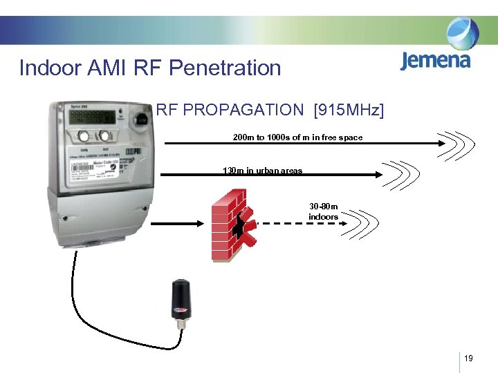 Indoor AMI RF Penetration RF PROPAGATION [915 MHz] 200 m to 1000 s of m in free space 130 m in urban areas 30 -80 m indoors 19