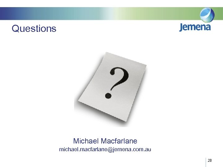 Questions Michael Macfarlane michael. macfarlane@jemena. com. au 26