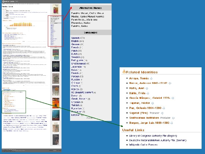 Identidades World. Cat • Construido para explorar los datos de World. Cat, Authority Files, y otros • Páginas creadas por OCLC para cada uno de los 25+ millones de personas, organizaciones y personajes ficticios en World. Cat • Incluye enlaces a World. Cat. org, Wikipedia, y otros sitios Web