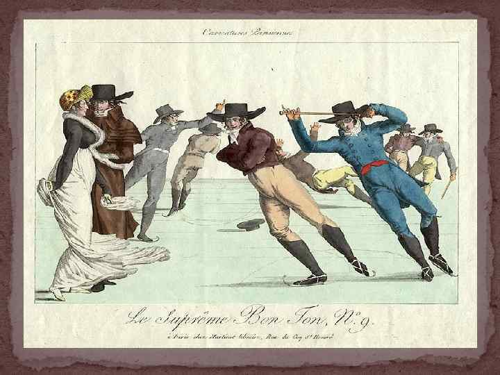 Известна история о том, как Наполеон заметил красивую молодую даму в очень смелом наряде. Он громко вызвал её из толпы и грозно сказал: «Мадам, вы раздеты, идите оденьтесь!» . Период Империи ввел тяжелые шелка и бархат, массивные античные орнаменты, золотое шитье на шлейфах платьев — их дизайн был разработан к коронации Бонапарта. Ненадолго появились шелковые платья с длинными шлейфами, вышитые золотом и серебром, широкие кружева и воротники «стюарт» .