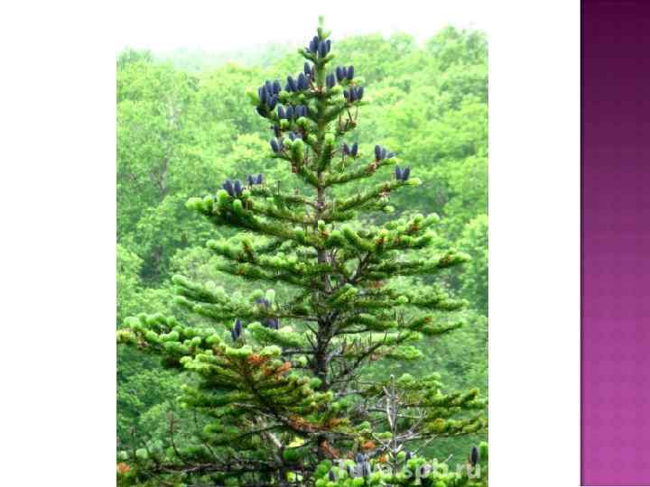 Представители охотской флоры — аянская ель (Picea ajanensis), белокорая пихта (Abies nephrolepis), каменная береза (Betula ermani) — широко распространены главным образом на северных склонах и привершинных участках Сихотэ-Алиня и Буреинского хребта, но часто они образуют леса и по днищам долин, куда со склонов спускается холодный воздух. Аянская ель и белокорая пихта нередко растут вместе с даурской лиственницей.