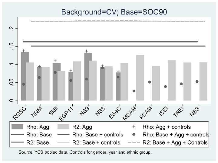 Conclusions “Nevertheless a large proportion of the social origins influence is adequately measured by quite simplified occupation-based schemes. This suggests that much, but not all, of the social origins influence of occupations is a direct function of average position within the stratification structure. However, contrary to claims that different stratification measures measure different things (cf. Rose and Harrison, 2010), the divergences between schemes are minimal and have little correspondence to theoretical foundations of different measures (cf. Lambert and Bihagen, 2007)” Gayle and Lambert 2011
