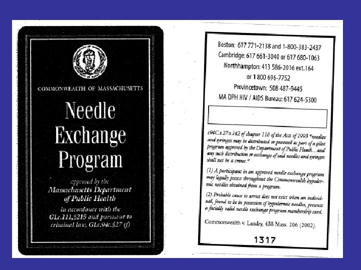 Needle Exchange Program (NEP) • Review of 42 studies from 1989 -1999 – Substantial evidence that NEPs decrease HIV risk behavior and HIV seroconversion among injection drug users Gibson DR, Flynn NM, Perales D. AIDS. 2001; 15: 1329 -1341.