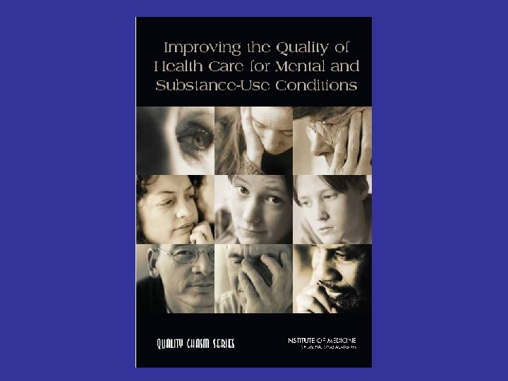 Future Issues • Address the quality chasm for mental health and addictive disorders (IOM) • Develop and use effective pharmacotherapy • Incorporate optimal organization of health services • Mainstream addictive disorders into medical care
