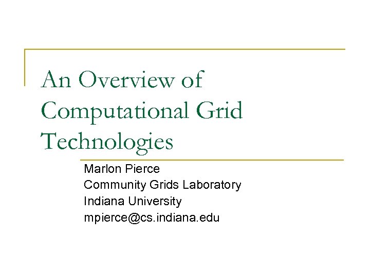 An Overview of Computational Grid Technologies Marlon Pierce Community Grids Laboratory Indiana University mpierce@cs. indiana. edu