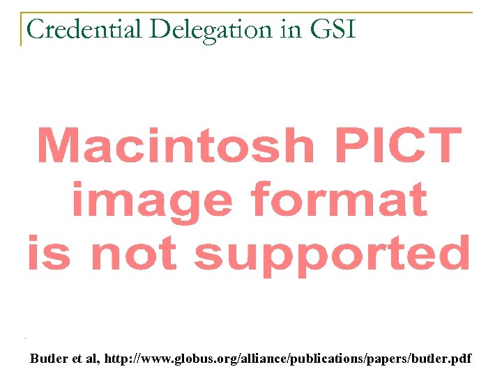 Credential Delegation in GSI Butler et al, http: //www. globus. org/alliance/publications/papers/butler. pdf