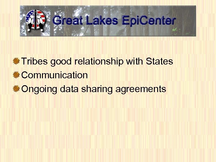 Tribes good relationship with States Communication Ongoing data sharing agreements