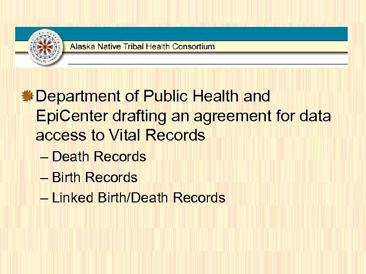 Department of Public Health and Epi. Center drafting an agreement for data access to Vital Records – Death Records – Birth Records – Linked Birth/Death Records