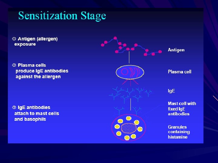 UN PO’DI STORIA 1921 (Prausnitz): Prausnitz e Küstner identificano come alla base della reazione allergica ci sia una componente serica”le reagine” • 1925 -29 (Dale): individua l’ISTAMINA come mediatore chimico coinvolto 1966 (Johansson, Ishizaka) : identificazione delle reagine con gli anticorpi Ig. E 1978 (Watkins): individua la reazione “anafilattoide”, causata da liberazione di mediatori chimici in assenza di Ig. E specifiche Otto Karl Prausnitz Dale Ishizaka Johansson