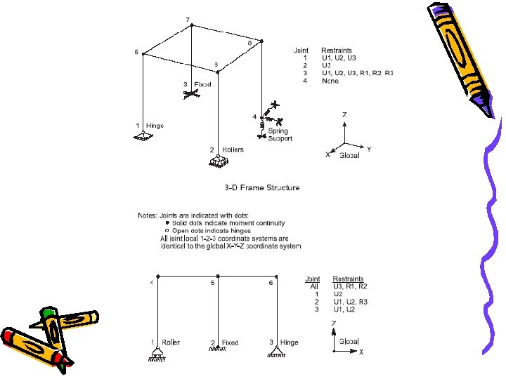 Penentuan Jumlah derajat kebebasan Struktur NX = 3 NJ – 3 NFJ – 2 NPJ – NR Dimana : NJ = jumlah total titik kumpul (termasuk perletakan) NFJ = jumlah titik yang sifatnya JEPIT NPJ = jumlah titik yang sifatnya SENDI NR = jumlah titik yang sifatnya ROL