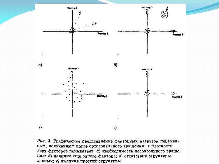 (4) Процедура вращения факторов Вращение факторов – процесс поиска наиболее легко интерпретируемого решения для данного количества факторов. Ортогональный поворот Косоугольный поворот