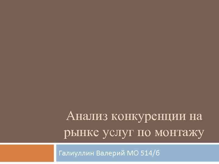Анализ конкуренции на рынке услуг по монтажу Галиуллин Валерий МО 514/б