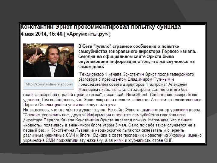 «+» Является генеральным директором ООО «Первый Канал» Стал креативным продюсером церемоний откры тия и закрытия X XII Зимних Олимпийских игр в Сочи «-» В 2014 году в сети появилась информация о его попытке суицида. Часто ходили слухи о его нетрадиционной сексуальной ориентации Окружен скандалами и интригами
