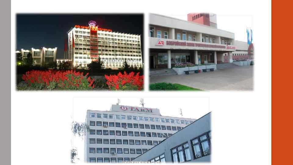 Другие предприятия города • Открытое акционерное общество «Бобруйская ПМК-243» • Бобруйское унитарное коммунальное производственное предприятие «Комбинат железобетонных изделий» • Открытое акционерное общество «ТАи. М» • Открытое акционерное общество «Бобруйсксельмаш» • Открытое акционерное общество «Бобруйскагромаш» • Республиканское унитарное предприятие «Бобруйский завод тракторных деталей и агрегатов» • Открытое акционерное общество «Бобруйский машиностроительный завод» • Дочернее предприятие «Полимер» ОАО «ТАи. М» • Совместное общество с ограниченной ответственностью «ЕВРОПЛАСТИК» • И ряд других