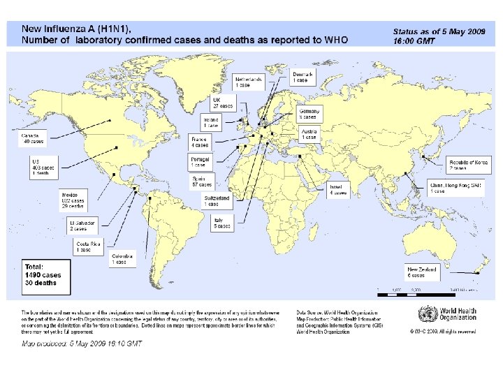 Состояние на 05. 2009 20: 00 мск • 1490 случаев в 21 стране • 57 штаммов из 11 стран США – 22 Канада – 9 Мексика – 7 Испания – 4 Италия – 4 Израиль – 4 Новая Зеландия - 3 Германия – 1 Швейцария – 1 Нидерланды – 1 Дания – 1
