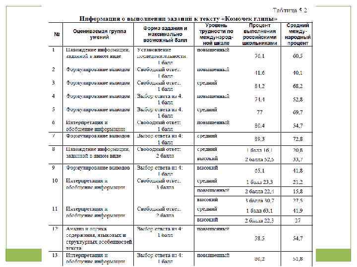 Выводы «Комочек глины» : внимательное прочтение текста подменяется собственными жизненными установками: выбирают, потому что нравится, не выбирают, потому что не нравится. путают причину со следствием в логической цепочке недостаточно четкое соотнесение вопроса и ответа невнимательное прочтение вопроса неумение учащихся приводить объяснение установленного факта или указывать на причину изменений неумение удерживать в поле своего внимания все компоненты трехчастного задания неумение обобщать информацию текста и за событиями видеть чувства неумение прослеживать динамику чувств, одновременно работать и с началом и с концом рассказа, синтезировать информацию из разных частей текста неумение объяснять причину изменений на уровне изменения состояния, а не на уровне цитирования какого-то события из рассказа неумение связать роль одного из героев рассказа с общей идеей текста, т. е. увидеть роль героя на фоне всего авторского замысла