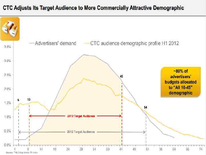 Выводы ü Рынок интернет-рекламы растет более чем 20% в год, и СТС Медиа использует данный тренд, активно запускает собственные онлайн ресурсы и проекты в новых медиа, включая мобильные приложения и игры. Video. More. ru – это первая Социальная Телевизионная Сеть. Площадка сочетает в себе возможности профессионального видео-портала и социальной сети. ü Охват российской аудитории на 2012 год составляет 95, 2 %. Средняя доля аудитории СТС в 2012 году достигла 7, 9 % (это 5 -ое место среди общенациональных каналов, all 4+). За период с 1996 по 2012 год потенциальная аудитория СТС увеличилась более чем в 10 раз – до 100 млн. зрителей по всей России. Растет доля телеканала СТС в наиболее востребованной и привлекательной для рекламодателей аудитории «Все 14 -44» . Руководство холдинга приняло решение сузить целевой возраст аудитории телеканала до 10– 45 лет.