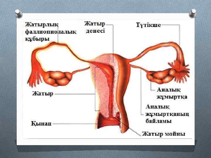 Аналық жыныс мүшелері 2 топқа (сыртқы және ішкі) бөлінеді. Сыртқы аналық мушелерге - үлкен, кіші жыныстық жапсарлар және шүртекей (клитор) жатады. Жыныстық жапсарлар май ұлпасы молтерілі қатпарлардан тұрады. Ал ішкі аналық жыныс мушелеріне – екі аналық без, жатыр, екі жатыр түтігі және қынап жатады. Ішкі аналық жыныс мүшелерінің бәрі де жамбас шоң қимасы — кіші жамбас қуысында орналасады.