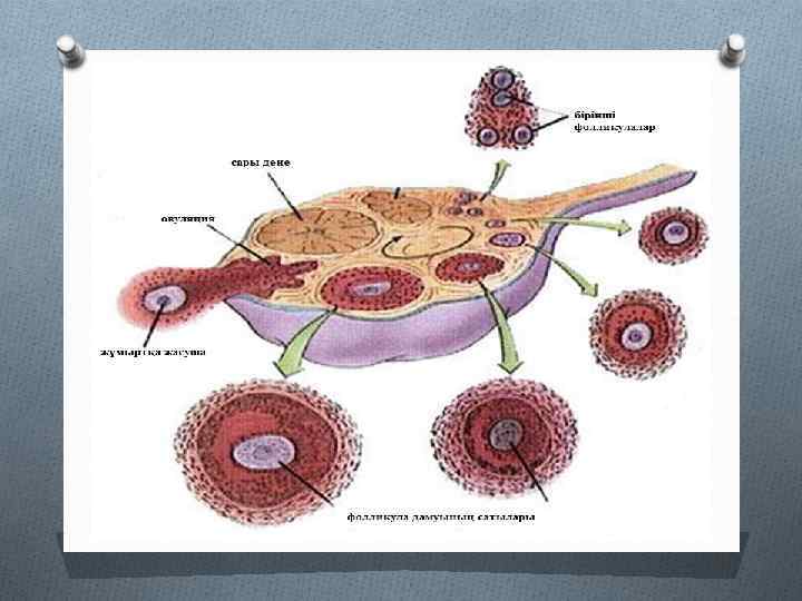 Фолликулалы аймақта аналық жыныс жасушаларының даму процесі — « овогенез" жүреді. Аталған аймақтың шеткі жағында бөлініп көбею сатысындағы жас жыныс жасушалары — майда біріншілік (примордиальды фолликулдар түрлі жануарларда түрліше топтасып жатады. Олардан сәл төменірек, біріншілік фолликулдарға қарағанда ірірек келген өсу сатысынд жыныс жасушалары — өсуші фолликулдар орналасады. Жыныс жасушалары пісіп жетілуге жақындағанда, фолликулдардың мөлшері тым үлкейіп, көпіршікті фолликуддарға айналады. Олар жарылғаннан соң, ішіндегі жетілген жұмыртқа жасушасы көпіршіктегі фолликул сүйығымен бірге жүмыртқалықтан бөлініп, жатыр түтігі қүйғышы өтеді. Фолликулдардың жарылу процесі н овуляция деп атайды. Жарылған көпіршікті фолликул орнында сары дене түзіледі. Жетілген фолликул (Грааф көпіршігі) қабырғасындағы фолликул жасушалары мен интерстициоциттер аналық жынысгормондары — эстрогеңцерді, ал сары дене жасушалары (лютеоциггер) — прогестерон гормонын бөледі.