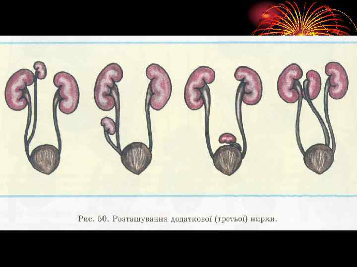 • АНОМАЛИИ ЧИСЛА ПОЧЕК • К ним относятся агенезия и аплазия, удвоение почки, третья (добавочная) почка. Аплазией почки считают отсутствие ее как развитого органа, а агенезией — отсутствие даже зачатков почечной ткани. Однако при аплазии в отличие от агенезии может быть мочеточник, слепо заканчивающийся вверху. • Еще более редкой аномалией является наличие на одной стороне двух отдельных почек.